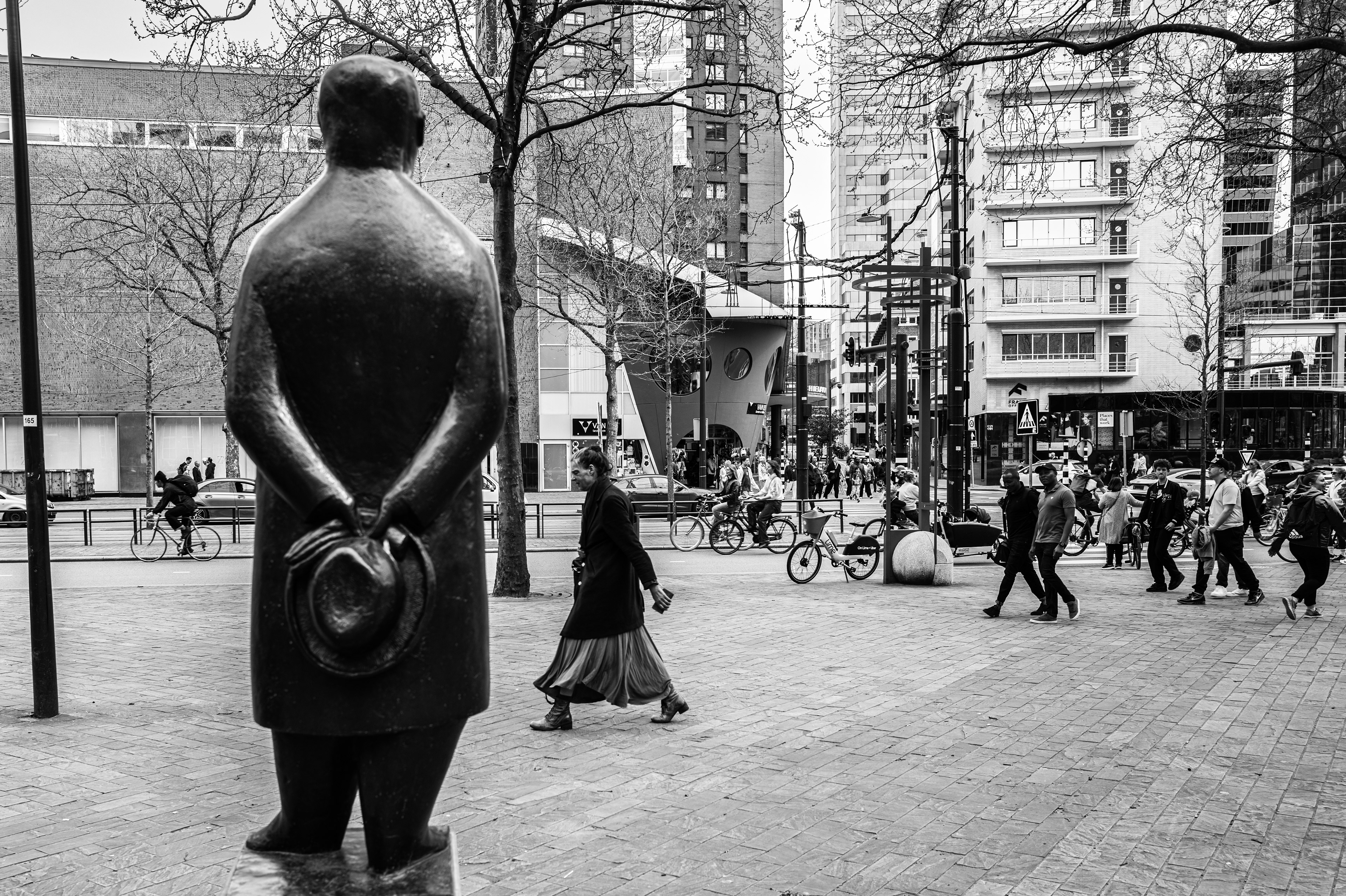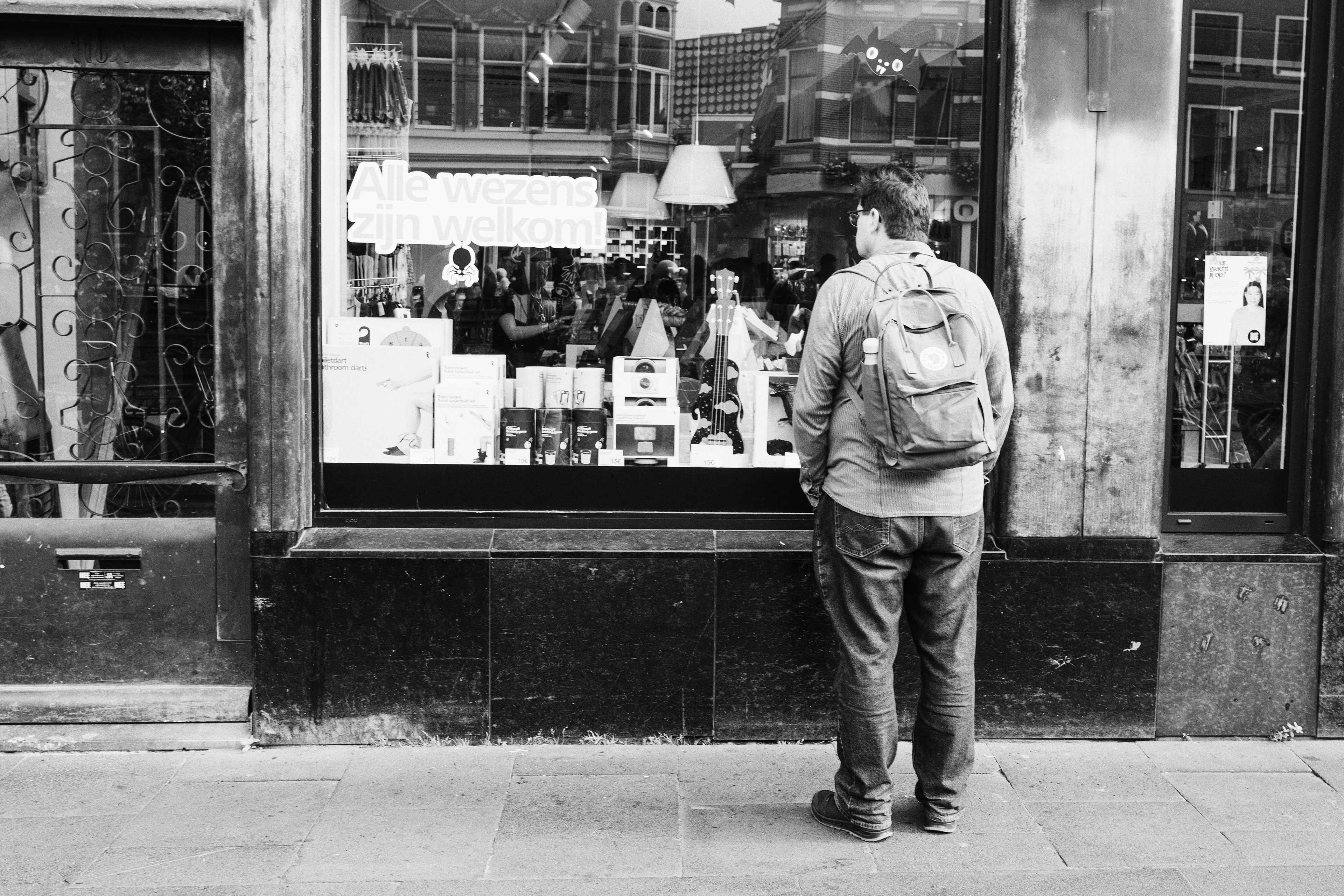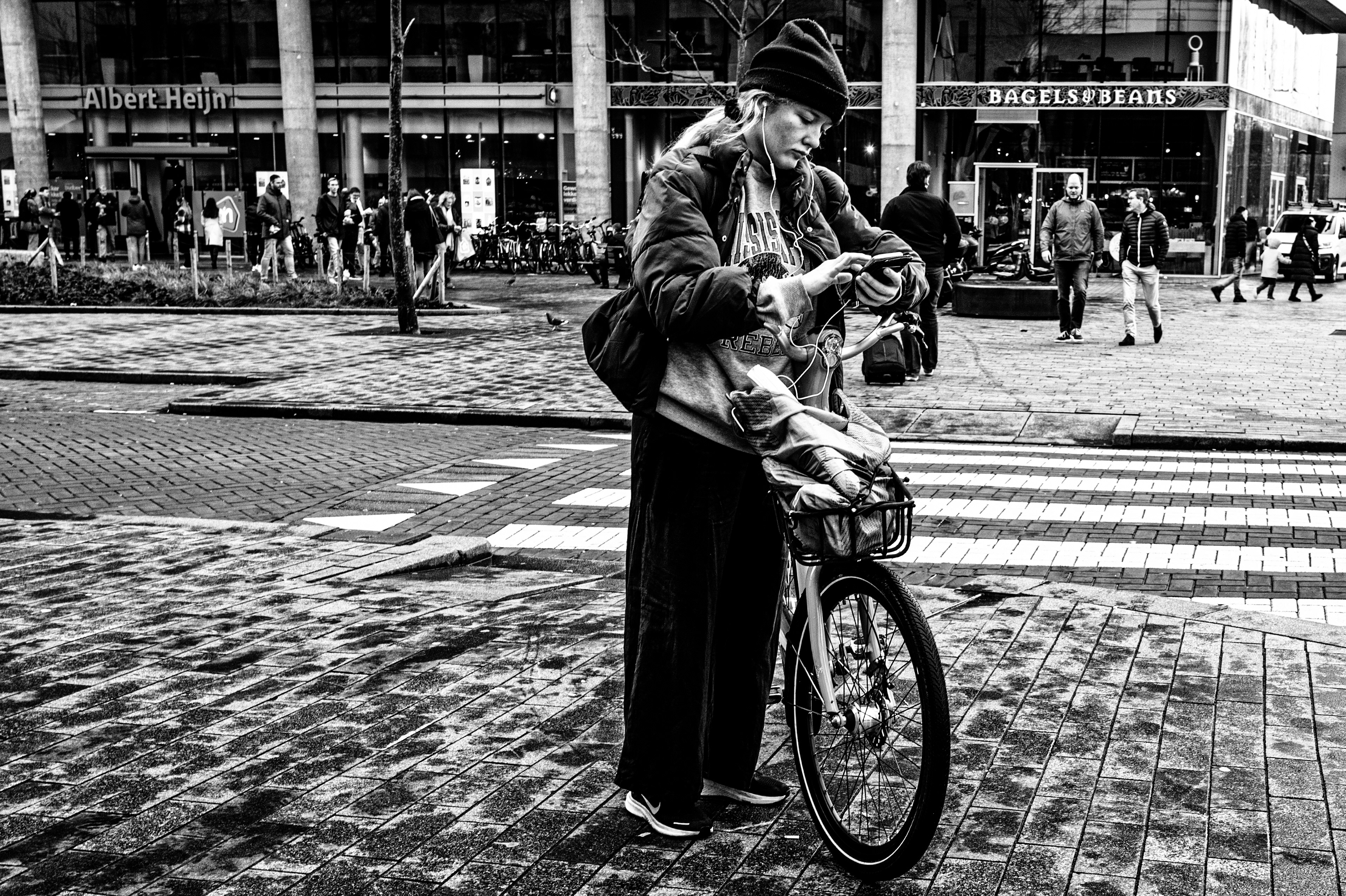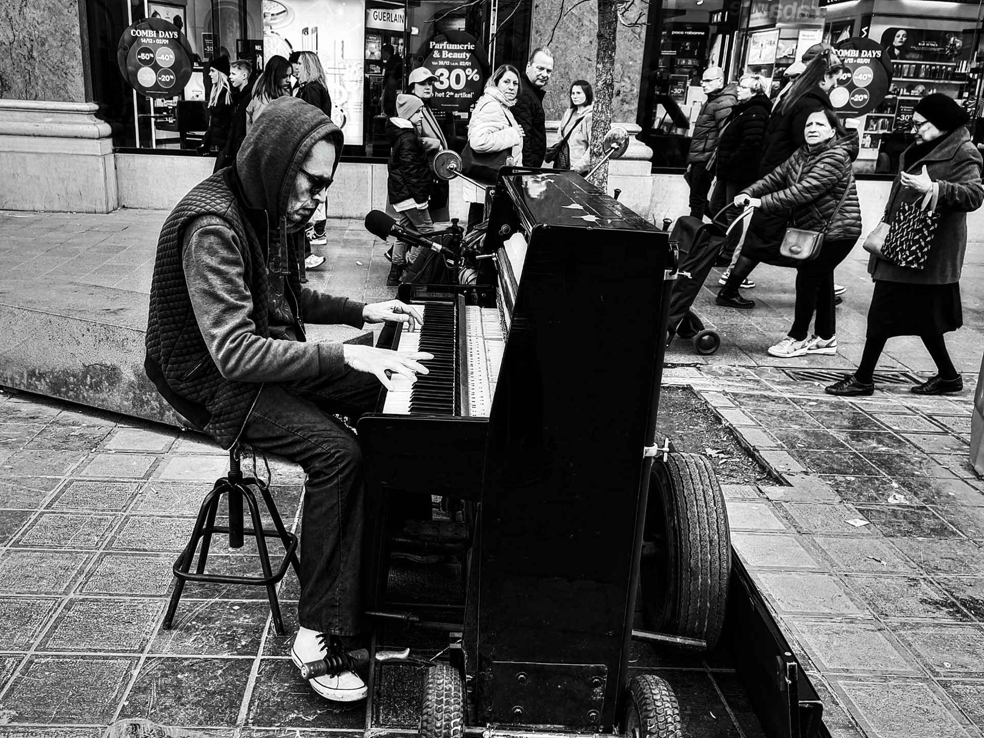 Als ik met mijn camera door de stad loop, kijk ik niet naar kleuren. Ik kijk naar licht, lijnen, gezichten, momenten. Zwart-wit helpt me om dat te vangen zoals ik het zie — rauw, eerlijk en zonder ruis.