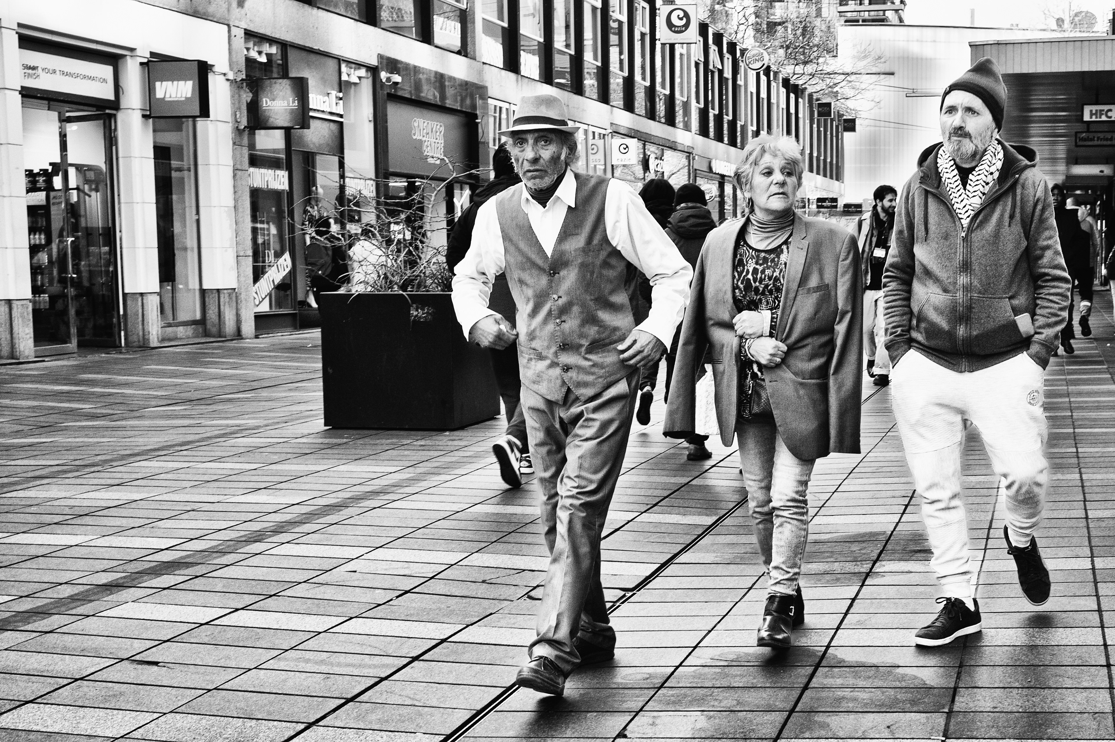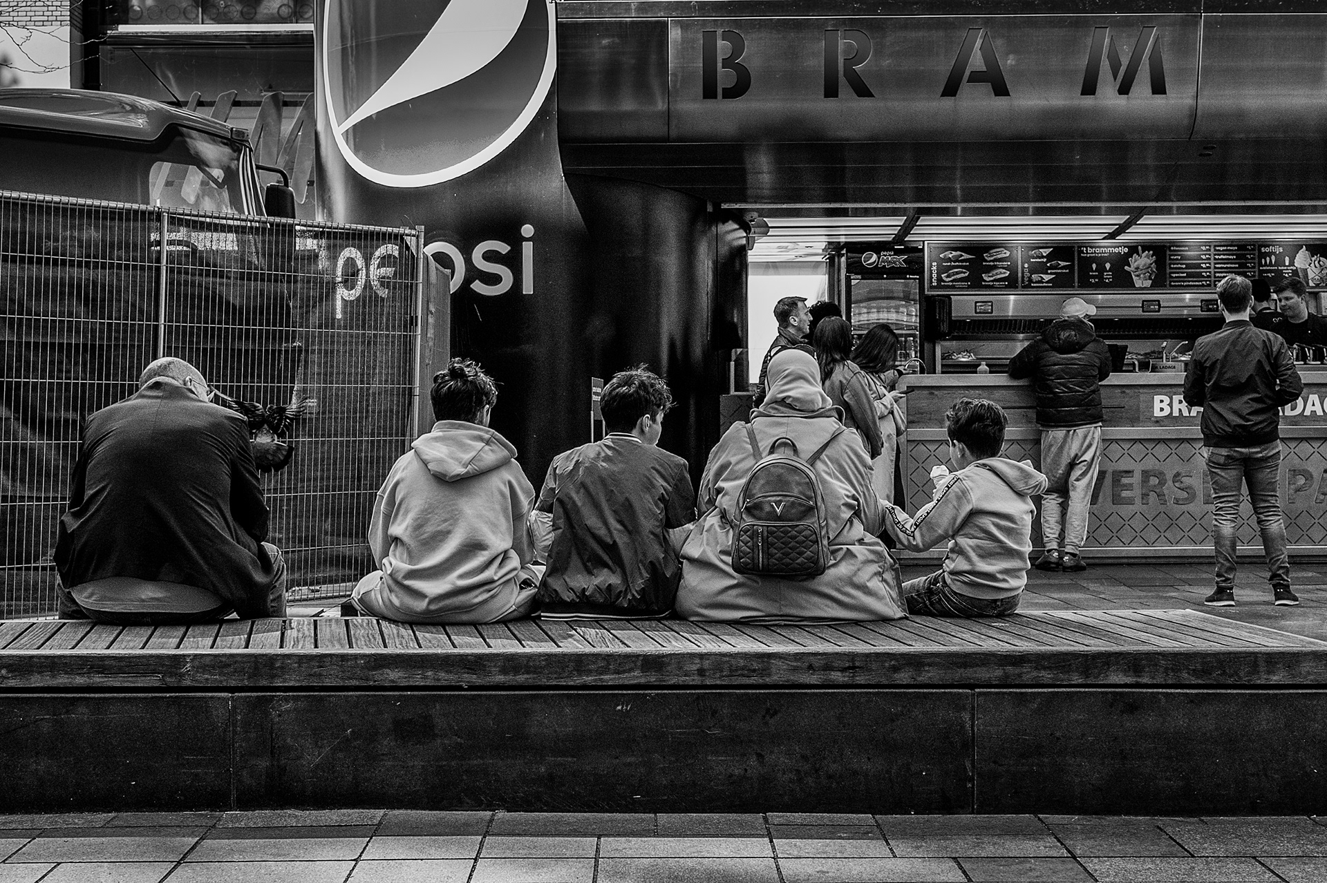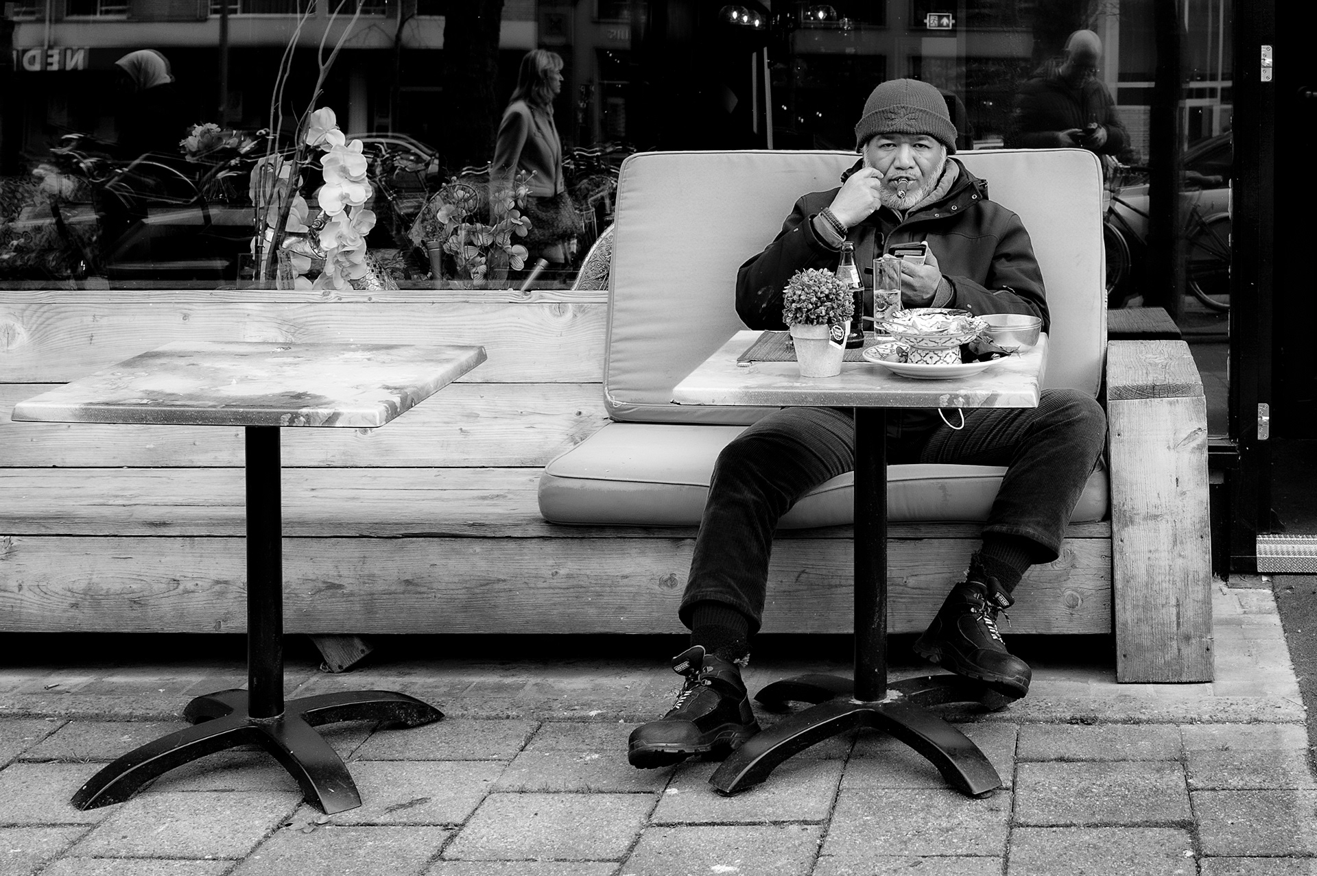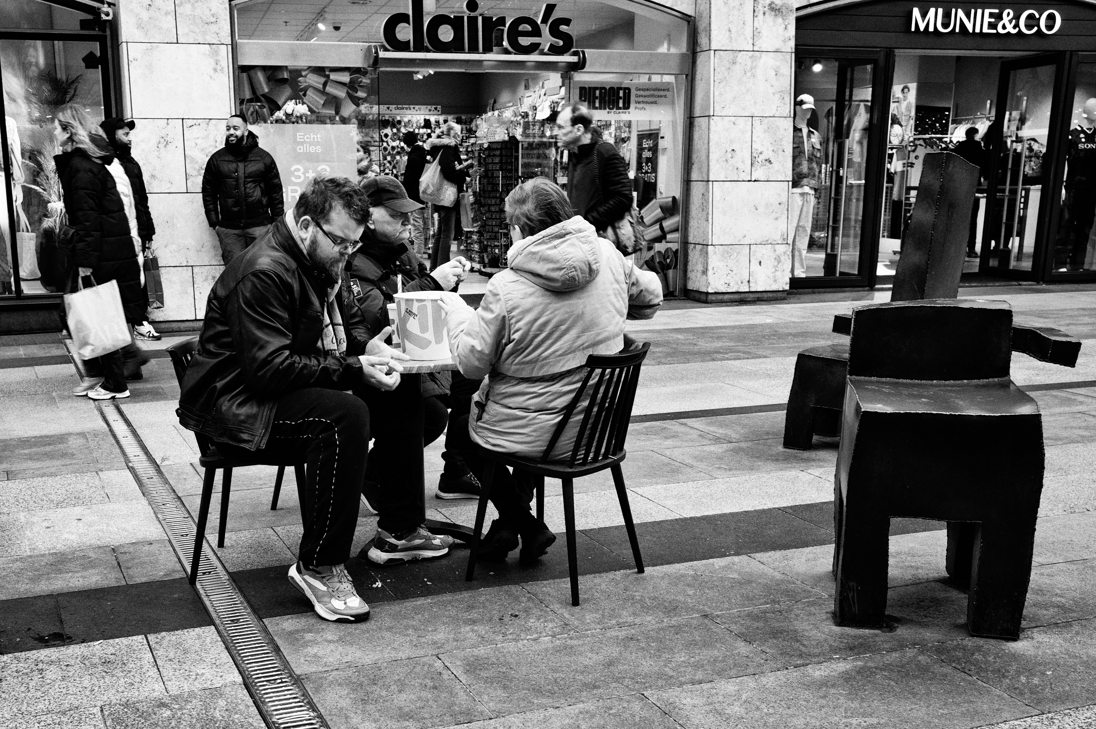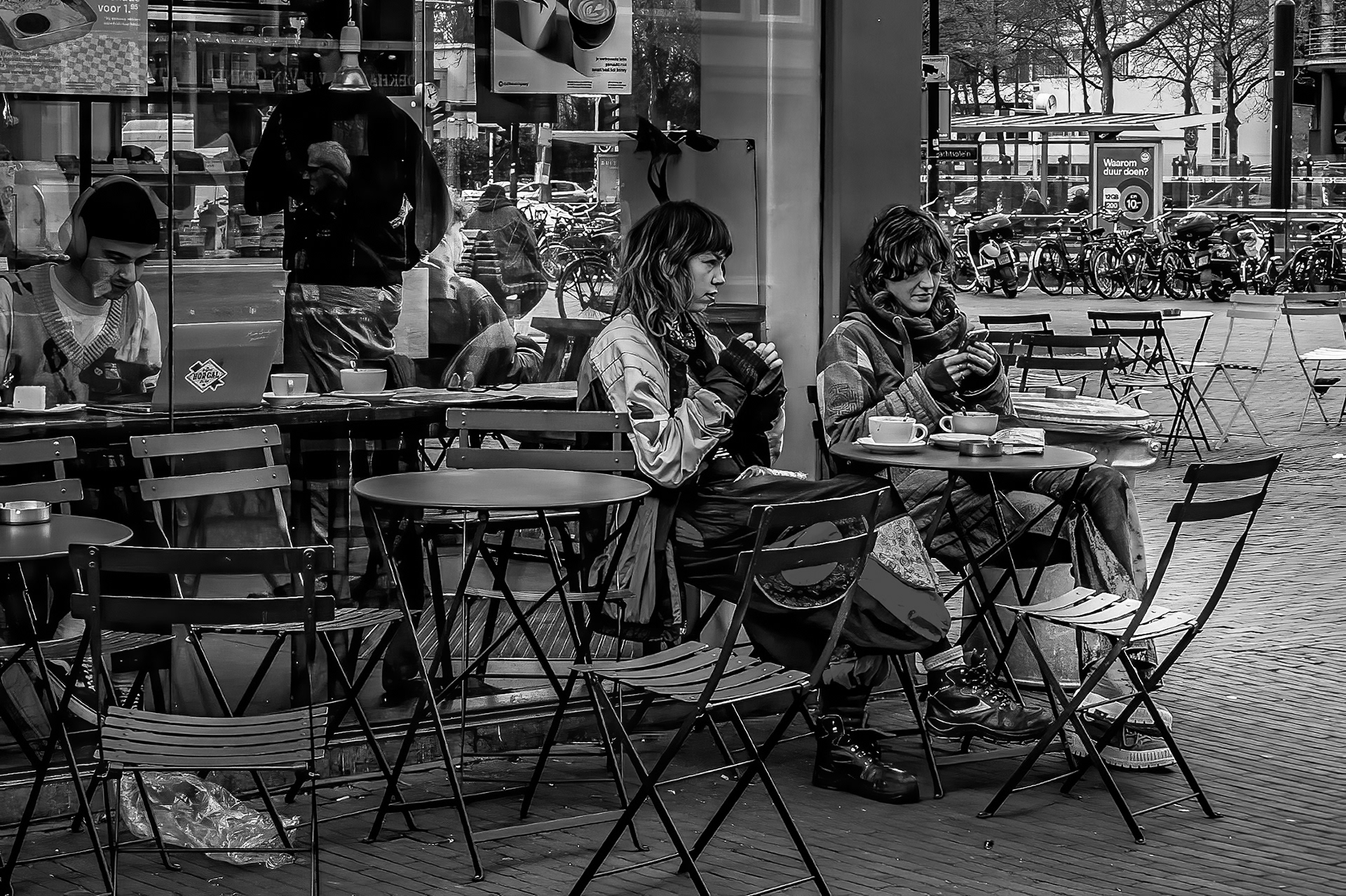 Als ik met mijn camera door de stad loop, kijk ik niet naar kleuren. Ik kijk naar licht, lijnen, gezichten, momenten. Zwart-wit helpt me om dat te vangen zoals ik het zie — rauw, eerlijk en zonder ruis.